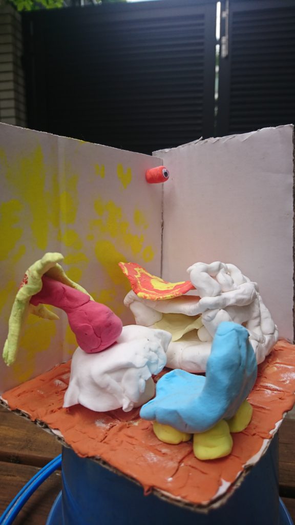 植物、えんぴつ、ぐるぐる、ようじ、色々な色のカラーねんど、ドアまであって、細かいところまで観察して挑戦してくれたんだなぁと思い嬉しくなりました✨